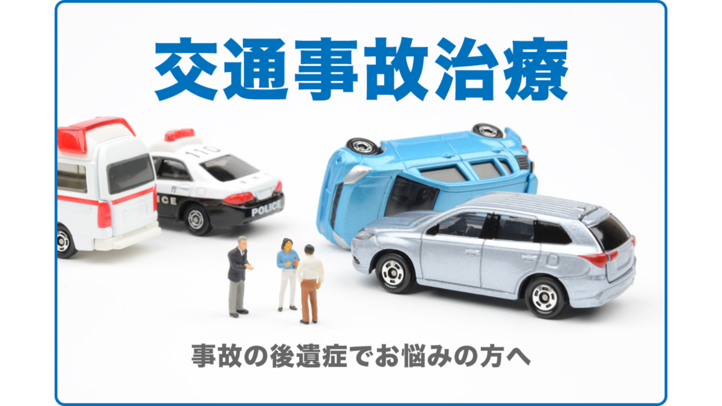 ムチ打ち以外にも股関節や肋骨、手首などにも症状をきたすことが多い交通事故外傷は、事故により身体が受けた外力を力学的に分析して治療計画を立てていきます。