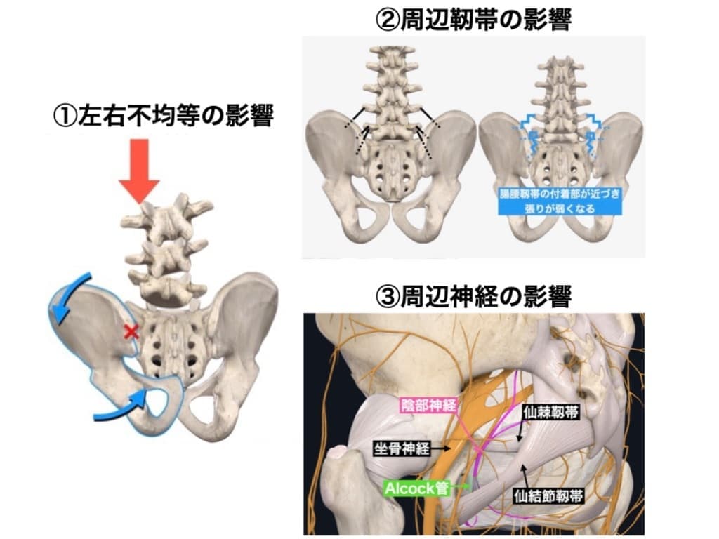 ・最初は腰部の神経障害から臀部の筋肉がこわばり、結果仙腸関節を離解させ、周囲靱帯の痛みが起こったケース