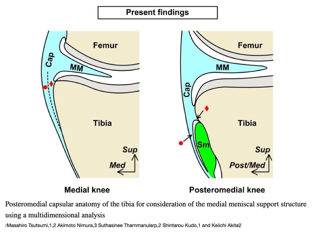 半月板は関節包を介して骨に固定されており、関節包の付着構造は半月板の安定性に大きな影響を与えます。