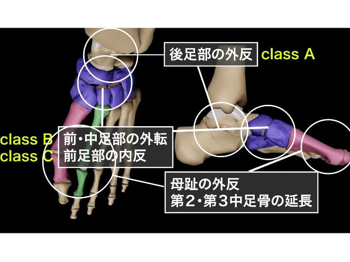 モートン病においてもこのPCFDの分類からモートン病の原因となる足の形態的変化を予測することができます。
