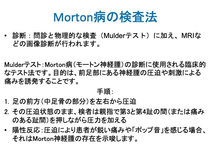 徒手検査法にて陽性となれば、開張足(外反母趾や内反小趾)など足の形態的情報からも痛みの原因を考えていく必要があります。