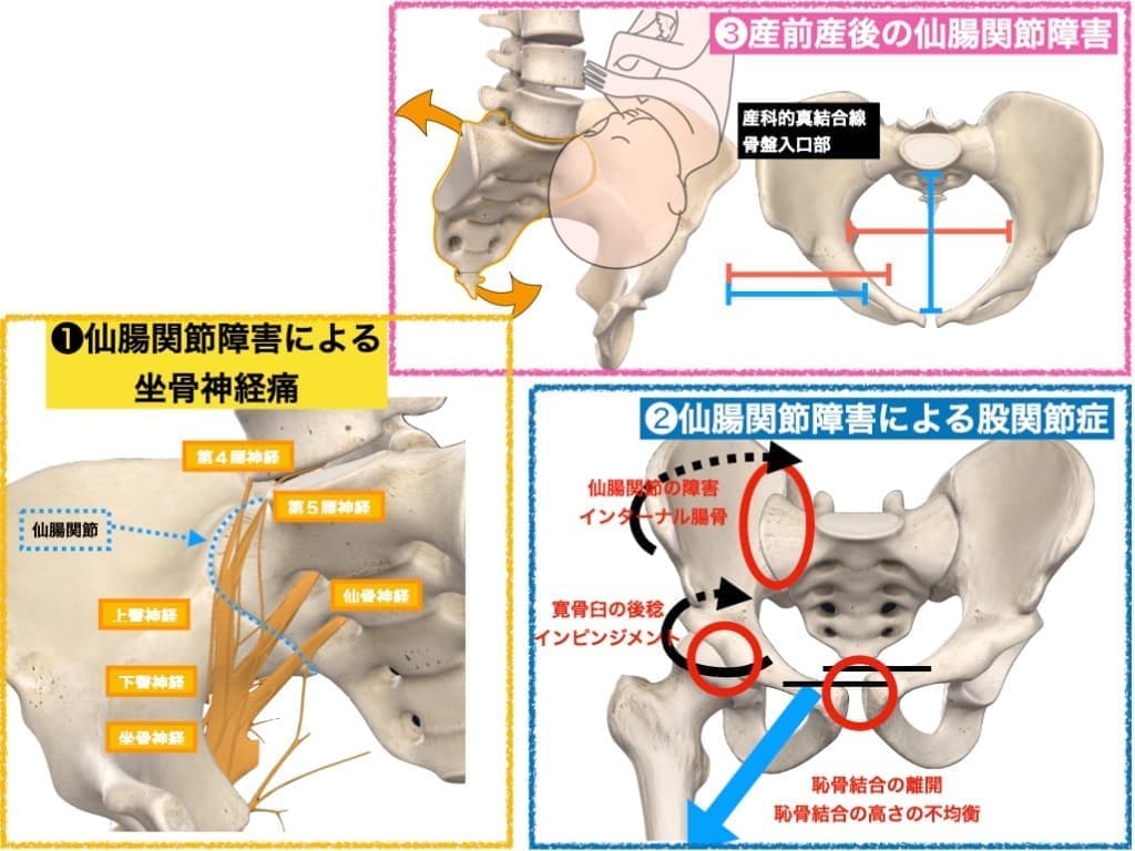 骨盤ベルトのような固定で悪化し、関節を緩めることで痛みの軽減と動作の可動域改善が期待できます。