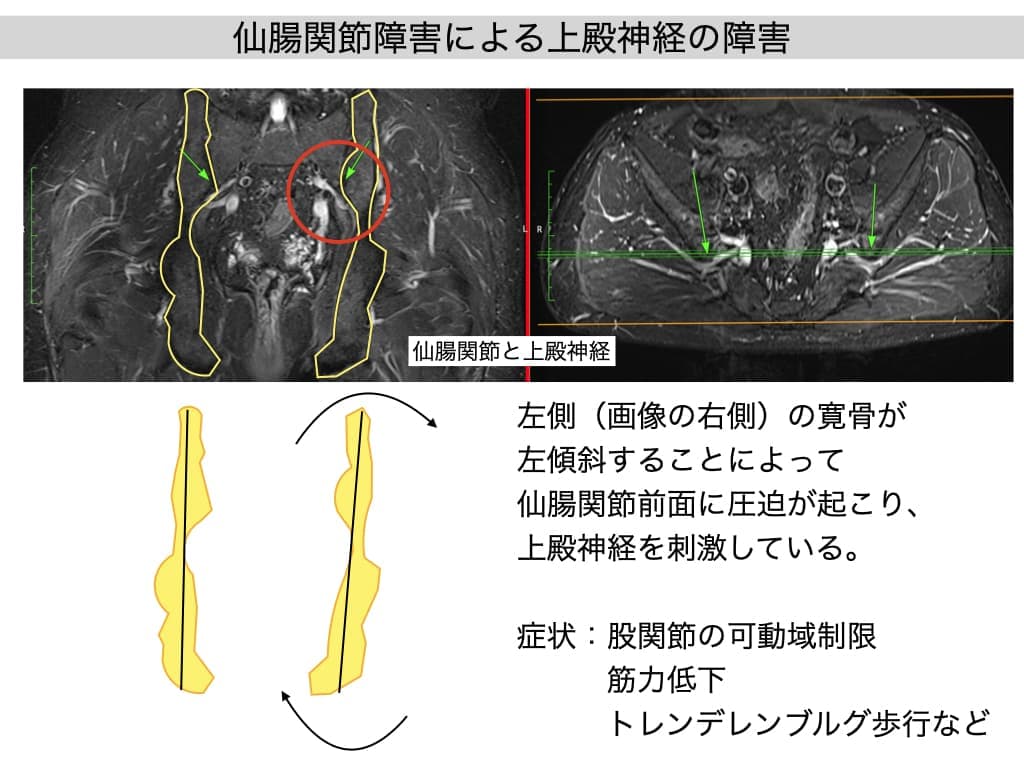 ・最初は腰部の神経障害から臀部の筋肉がこわばり、結果仙腸関節を離解させ、周囲靱帯の痛みが起こったケース
